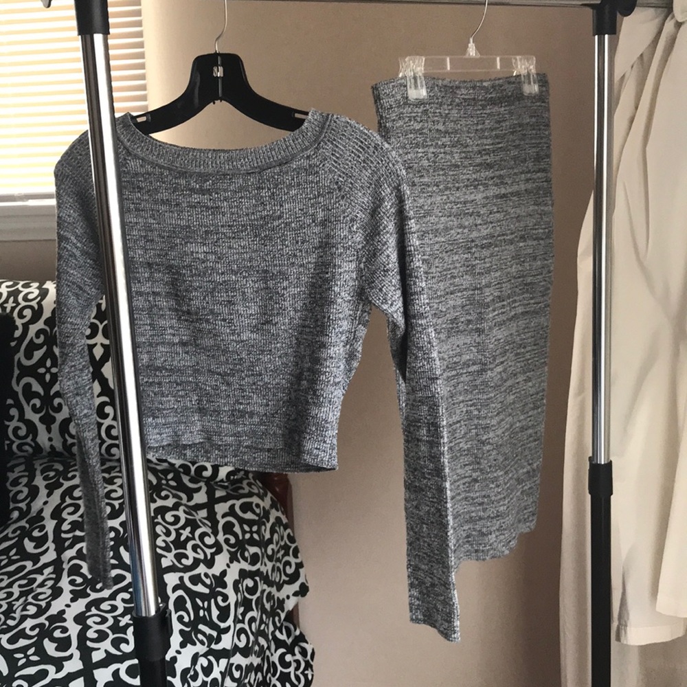 Super cute stretchy two-piece gray ribbed set- skirt and shirt. Excellent condition