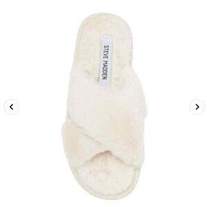 Cream, ivory Faux Fur Slippers has cross over detail, Size Large - 9-10