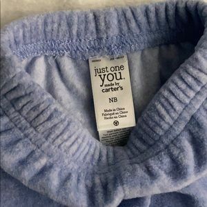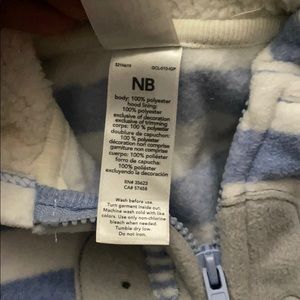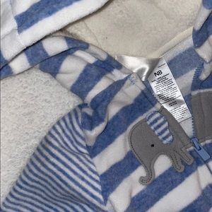 Very soft material; blue and white with elephant on front of jacket.