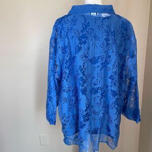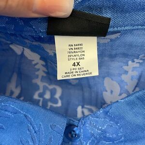 Salon Studio in 2 piece set with floral print in blue color button up, with matching sleeveless top. Very lightweight, breathable, nice quality, with stretch.