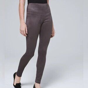 excellent condition no issues size 10 this is for 2 pair of soft sueded leggings faux suede and vegan leather trim on pair grey one pair maroon by white house black market