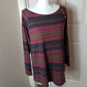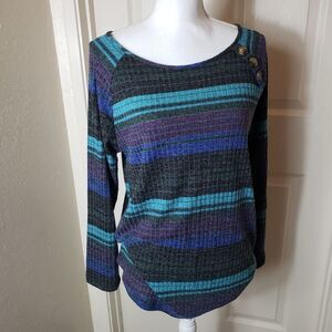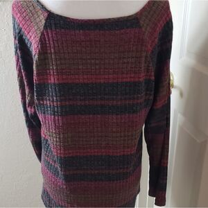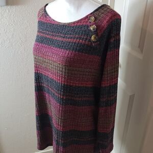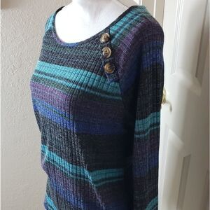Pre-owned striped acrylic sweaters purple/pink, blue/green button accents on shoulders