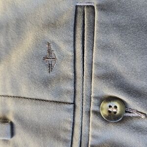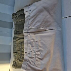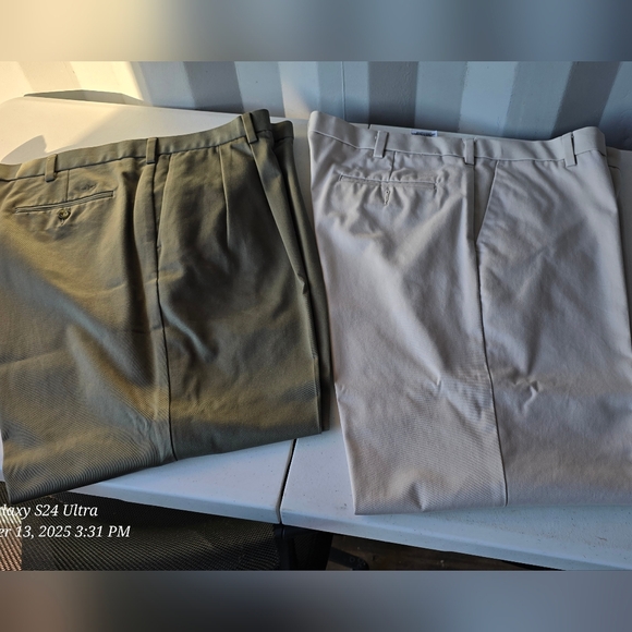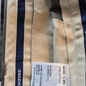 Olive pair is pleated...Tan dockers are flat..in exce condition.. from private community estate sale.. straight from him closet and dresser... Upgrade your wardrobe with these stylish men's pants. Available in olive and beige, these pants offer a versatile look for any occasion.