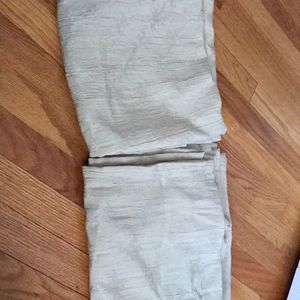 Long drape panels, tan color, pretty design, has pocket for rod. 84” length