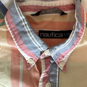 2-two Nautica Sailboat vintage Pastel stripes men’s casual cotton shirt L retro