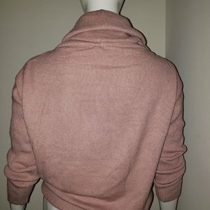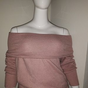Long sleeve 2-way sweater can be worn as a cowl neck or off the shoulders. 60% cotton 40% acrylic.