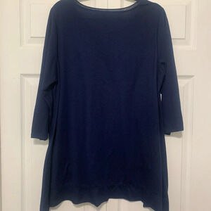 2x Allie and Rob Navy blue 3/4 Sleeve Flare Bottom Top. Gently used Condition with a lot of wear left. Cool Grommet Type Holes Around The Swoop Collar. Flares Out At The Bottom For Comfortable Casual Wear.