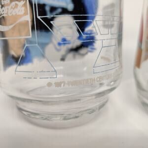 Glasses are in good vintage condition. The graphics are in great shape with only very minimal ink loss/print imperfections in a few places. Glass is clear and without significant scratching or clouding and no chips or cracks.