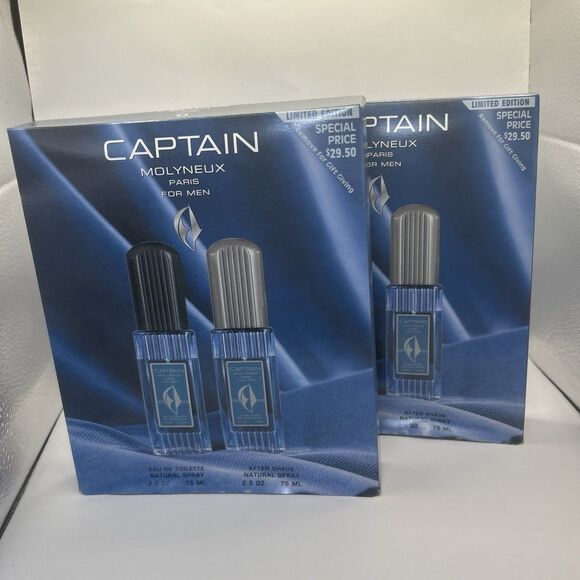 2x Captain Molyneux Men’s Gift Set - 2.5 oz EDT + After Shave Spray Each NEW