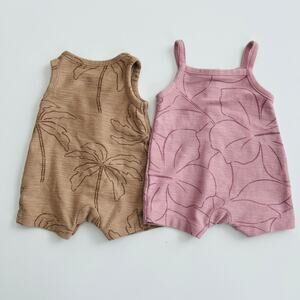 2x Carter’s floral outline print rompers onesie one piece brown pink baby
