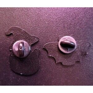 2x new Witchy bat witch cat enamel pins with rubber backings