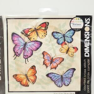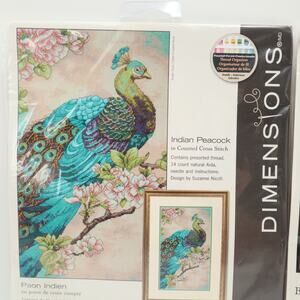 2x Dimensions Cross Stitch Indian Peacock 9"x15" and Butterfly Profusion 11"x11"
