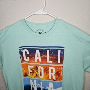 2x Mint green t-shirt with California print on front.
