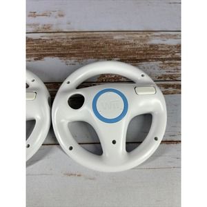 Enhance your Mario Kart gaming experience with this set of two Genuine OEM Mario Kart Racing Steering Wheels for Nintendo Wii and Wii U. The white racing wheels are compatible with Nintendo Wii Remote and have wireless connectivity for seamless gaming.