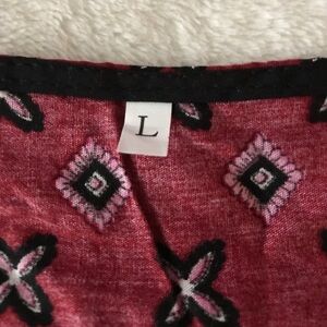This dress is a cotton polyester blend and can be worn as mini dress or a long top. It is a long sleeve dress with a crew neck and Floral pattern. Nice dress for the beach! The size chart is included with the photos.