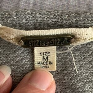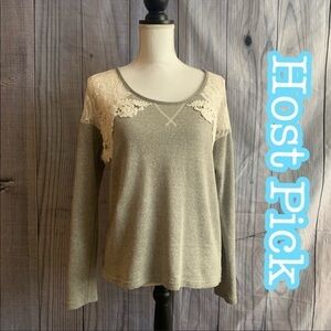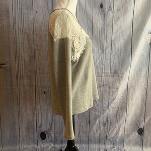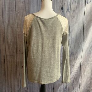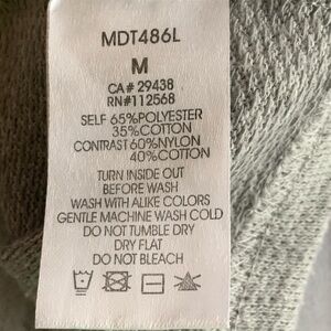 This top is in good condition with normal signs of wear. It does have one small hole in the lace on the shoulder area which I have shown in the photos and it is not noticeable. It is 65% cotton and 35% polyester and the contrast is 60% nylon and 40% cotton. It is machine washable. Great looking top for the causal outing or with a nice pair of dress pants.