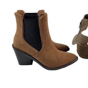 2x LOT MIA + Campsite Ankle Booties Size 9 Block Heel Boots Slip On Western