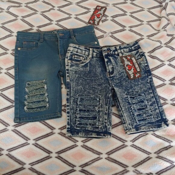2x New Acid Wash Girls Denim Jeans Shorts Size 10