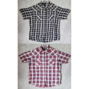 2x VTG Ely Plains BIG MAN Plaid Pearl Snap Short Sleeve Western Shirt Size 2X