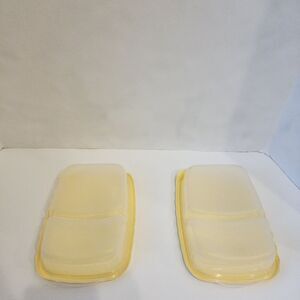2x Vintage Rubbermaid Take Alongs Scalloped Edge 2 Compartment Containers