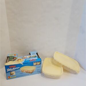 2x Vintage 2000's Rubbermaid Take Alongs Scalloped Edge 2 Compartment Containers. microwavable, stackable, freezer and dishwasher safe. The lids have a cute scalloped edge, with 2 compartments perfect for lunches.
