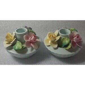 2x Vtg Thorley Staffordshire England Bone China Porcelain Floral Candle Holders