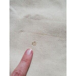 Flaw = small discoloration on back of one pillow sham. See photo.