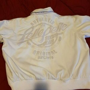 2x White cotton and leather pelle pelle jacket