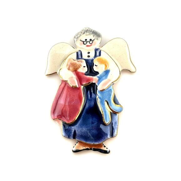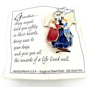 2”x1.5” Art To Wear 1998 22K Gold Trim Grandma Grandkids Handmade Brooch