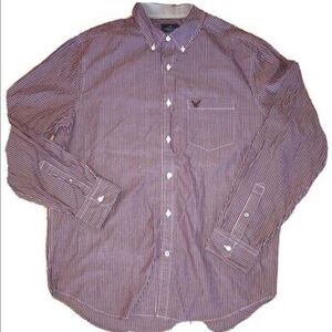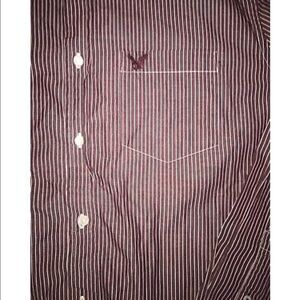 ✨2xHP✨AEO Striped Button Down Shirt. Maroon✨