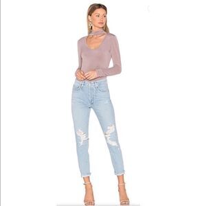 We are totally loving the worn and lived-in feel that these new jeans by AGOLDE are giving us! These hi rise jeans feature a light wash that's complimented by destruction and sliced knees for a super cool and casual vibe. Perfect for the transition into spring, these jeans are a total must-have for every closet!