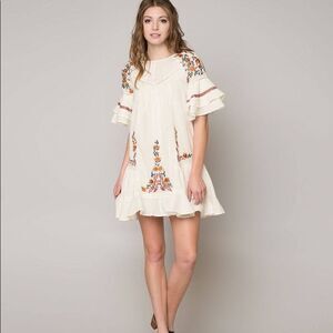 ✨2xHP✨FP White Ruffled Floral Embroidered Dress✨
