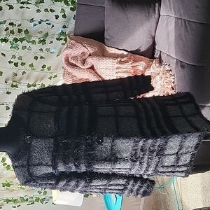 💚2xHP💚Nicole Alexander Wool Blend Super Soft Eyelash Grey and Black Cardigan