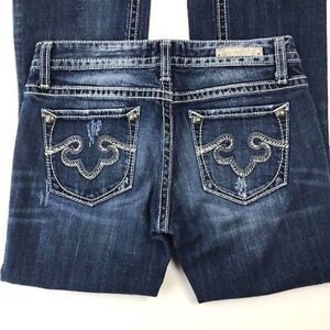 Rerock for Express Women's Boot Cut Jeans Medium Wash Pocket Stitching