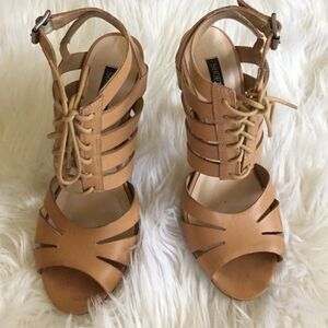 ✨Statement Style HP 9-13-17 & Closet Crush HP 9-28-17✨The search for the perfect shoe will stop here. ShoeMint introduces the Elzabeth, a partner in crime to any outfit choice. With a tan leather upper and stylish lace up look, you can't say no. Sexy cut outs, adjustable heel strap and approx 4 inch stiletto heel completes this trendy sandal. worn once! Excellent condition! Size 8 - fits true to size. Approx. 4" heel Leather upper✨