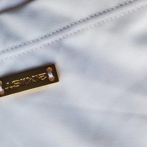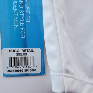 This is a great looking swimsuit by a leader in men’s apparel – The suit measures 13 ” across the waist with 7.25” sides, 2" inseam and lined in front. It also has gold accent s near the drawstring and left leg giving the suit a very upscale look. Fabric - 80% Nylon, 20% Spandex. Liner is 100% Poly. This suit retailed for $95.00, but can be yours for a fraction of the price. White - Great for showing off that tan!