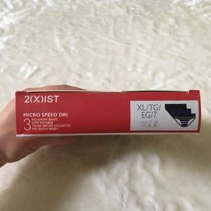 2(x)ist brand NWT pack of 3 super soft no-show Speed Dri briefs. One with horizontal stripes in blue, black & white. One solid blue and one solid black. Supportive contour pouch keeps your boys happy. Moisture wicking performance fabric keeps you cool in the summer heat. Soft microfiber waistband and tagless designed for comfort. 90% polyester / 10% spandex for a stretchy fit.