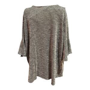 2xl Black/white Striped Blouse Pullover Star Vixen Ruffled Short Sleeves