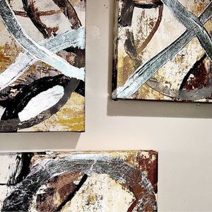 3 - 12”x12”x1” Abstract Silver Leaf & Acrylic Canvas Art