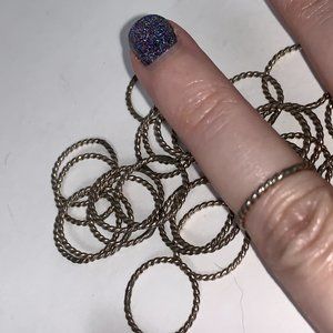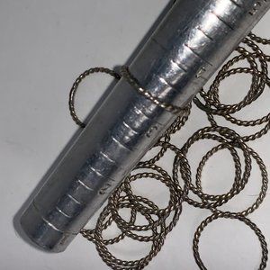 This tiny sterling silver ring is made out of Pattern wire with a Twist design. These rings were made by a student and they used soft solder instead of silver solder so the ring joints are weak.