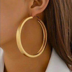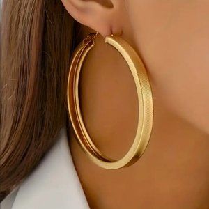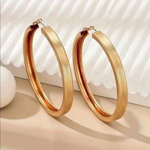 Brand NEW Women's Chunky Etched Gold Hoop Earrings