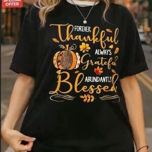 ๐5/$15 Stay stylish and comfortable with this black graphic tee featuring a 'Forever Thankful' design. Perfect for casual outings.