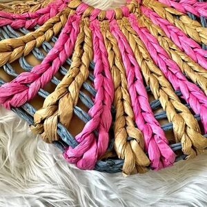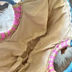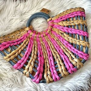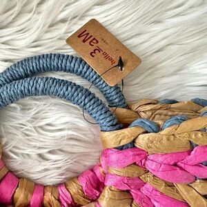 3 AM FOREVER BOUTIQUE | Straw Purse Bag Blue Tan Pink Lined Drawstring