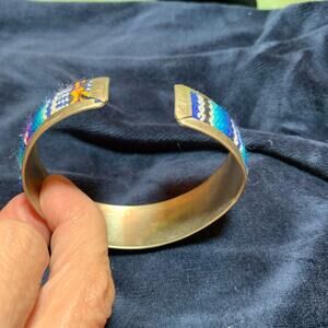 Bundle of 3 vintage woven bracelets - one metal backed cuff, one wrap, and one triple pastel friendship style. Backing (see pic) is s little loose on the wrap