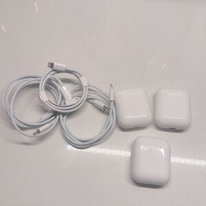 3 Apple Charging Cases (2nd Generation) & One AirPod. 3 Apple USB-C to Lightning Cables short.