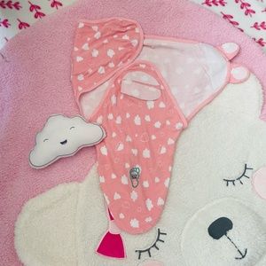 2-Pink Cloud Print Swaddle with Velcro: Perfect for babies aged 0-3 months, this pre-owned swaddle from Baby Dew is both stylish and practical. The swaddle showcases a delightful pink color with cloud prints, creating a dreamy atmosphere. The secure Velcro fastening ensures a snug and comfortable fit for your little one.