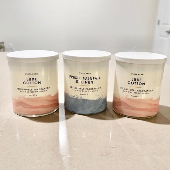 3 Bath & Body Works White Barn Candle Trio Luxe Cotton Fresh Rainfall Linen