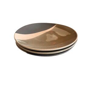 3 Baum Bros. Metro Salad Plates 8.5" Gray, Biege, Green Minimalist Discontinued
