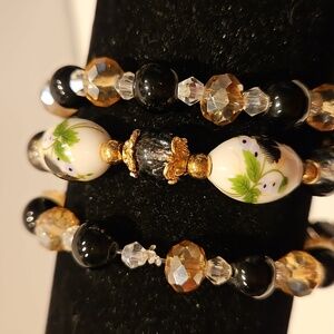 3 Black & White & Goldtone Glass Beaded Stretch Bracelet Set. These elegant bracelets features a stunning combination of black & gold beads. The intricate design is both stylish and versatile. Make an offer, you might be surprised.