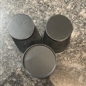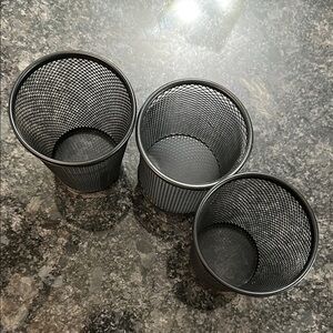Set of three black mesh desk organizers. Perfect for home or office use.